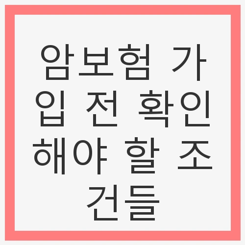 암보험은 개인의 삶에서 중요한 재정적 지원이 될 수 있지만, 그 선택과 가입 전 확인해야 할 조건들이 매우 많습니다. 따라서 자신에게 맞는 조건을 충분히 이해하고, 필요한 보장 내용을 꼼꼼히 살펴보아야 합니다. 이를 통해 보다 안정적이고 든든한 보험 가입이 가능해질 것입니다.